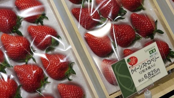 وعادة، ما تنطوي زراعة المنتجات الراقية على ممارسات دقيقة والكثير من الجهد الذي يضعه المزارعون اليابانيون فيها. وتتخذ الفراولة شكل كرة المضرب، ويُنتج 500 حبة من هذا النوع فقط في اليابان، حيث تُباع الحبة بمبلغ 4 آلاف و395 دولاراً. أما الندرة في إنتاج هذا النوع من الفاكهة، فهو بمثابة تكتيك يستخدمه المزارعون في اليابان، والذين يُنتجون فقط 2400 عنقود من عنب "روبي رومان" سنوياً، إذ يُشبه هذا النوع من العنب الياقوت الروبي، ويُباع العنقود بحوالي 800 دولار.