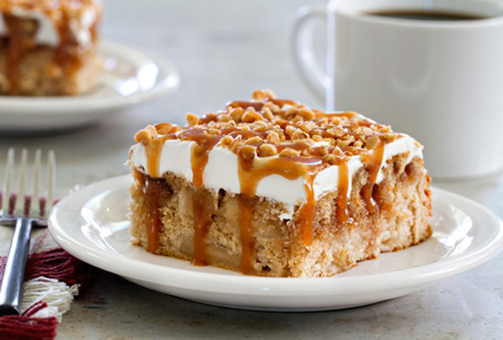 كيكة او كعكة التفاح بالكراميل اللذيذ.. وصفة من الحلويات الغربية، سهلة التحضير ولذيذة المذاق، وبما ان التفاح يدخل ضمن مركباتها فلا بد انها مفيدة ايضا. جربيها بنفسك وشاركينا رأيك بطعمها الشهي والرائع.