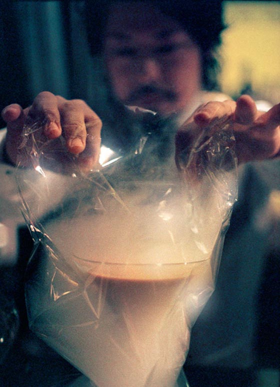 يصنع هذه المشروبات الغريبة شوزو ناغومو، الذي يعمل ميكسولوجيست أي "خبير خلط مشروبات وكوكتيلات". حانته أشبه بمختبر العلوم، كما تتضمن قائمة مشروباته.. كوكتيل شمبانيا الطماطم، فودكا الجبنة، وفودكا "فوا غرا" كبد الإوز.