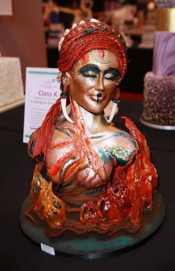قد تبدو الصور وكأنها من أحد المعارض الفنية أو أحد معارض الزهور، ولكن في الواقع الأعمال المعروضة ماهي إلا قوالب كيك بأشكال مبتكرة زينت بمهارة، في مسابقة Cake International والتي تشمل تزيين الكيك بالسكر والكريما ومهارات الخبز بأشكال غريبة ومتميزة، والتي أقيمت مؤخراً في مدينة برمنغهام البريطانية، وهي أضخم وألمع حدث تتم فيه استضافة أكبر عدد من القطع الفنية المتنافسة، بمشاركة العارضين وخبراء صناعة الكيك من مختلف أنحاء العالم لتعلم أحدث الاتجاهات في هذا المجال، والنتيجة قوالب كيك مذهلة قد تكون أجمل من أن تؤكل.