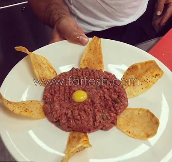كما نشر الشيف صاحب مطعم "نصرت ستيك هاوس"، والذي لديه العديد من الفروع حول العالم، في دبي، وأبو ظبي، وتركيا، مقطع فيديو آخر وهو يصنع طبق "ستيك تارتار" والذي يتكون من اللحم النيء الممزوج مع البهارات، وعدة أنواع من الصلصة، والمخلل، ثم يقدم مع بيض نيء وشرائح الخبز المقرمشة.