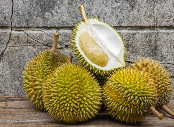 فاكهة دوريان: هل تخيلت يوماً أنَّه يمكنك أكل الجوارب الرياضيَّة القذرة؟ قد يكون الأمر مستحيلاً، ولكن مع فاكهة دوريان أصبح ممكناً، حيث أنَّ طعمها يشبه رائحة الجوارب النتنة، وتنمو تلك الفاكهة في شرق آسيا، ويوجد منها 30 نوعاً، 5 أنواع منها فقط صالحة للأكل.
