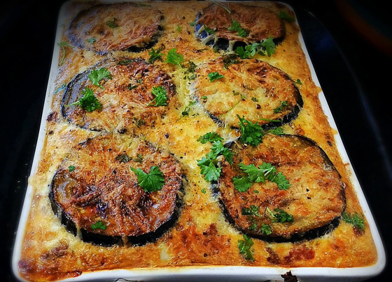 ملاحظة: يمكن أيضا استخدام شرائح البطاطا المقلية بدل شرائح الباذنجان أو يمكن أيضا استخدام الباذنجان والبطاطا معا.