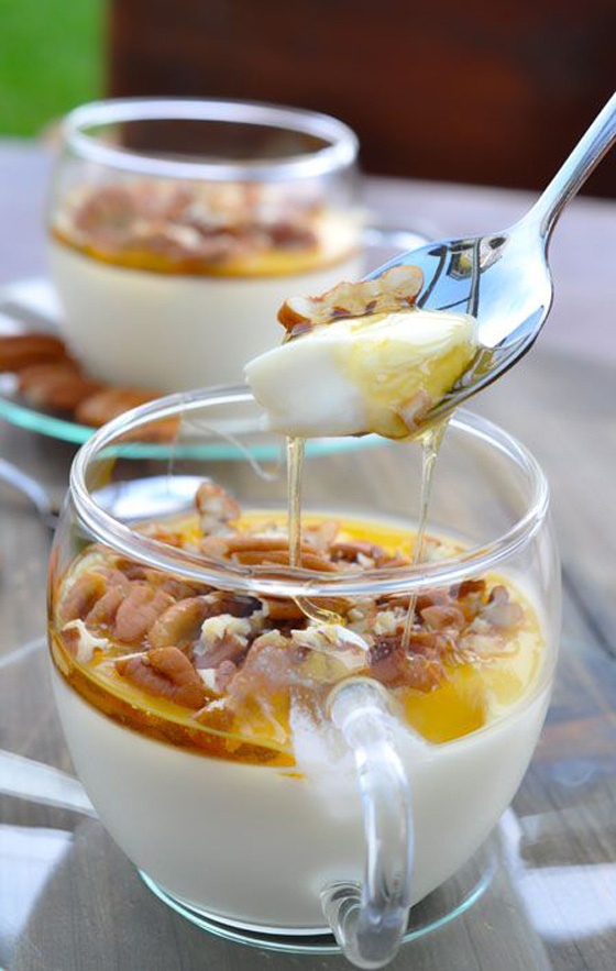 للتحلاي: لبن اليوغورت الزبادي مع العسل والجوز: