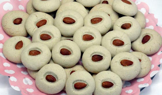 - نغرس المكسرات في وسط أقراص الشكرلمة بشكل مرتب.