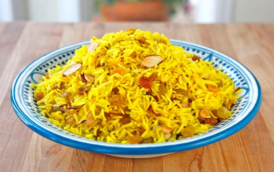 الأرز العراقي بالزعفران والزبيب: