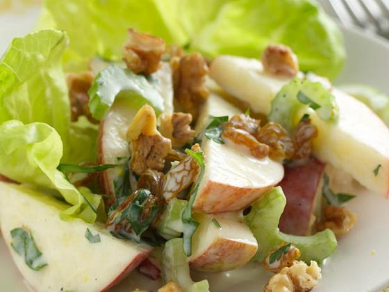 - نخفق البيضة مع الملح والفلفل.سلطة وولدورف: