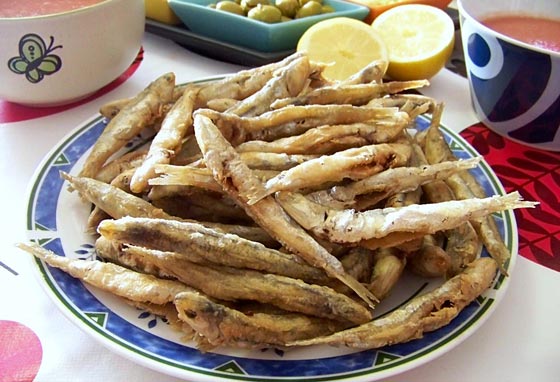 هذه على الارجح احدى الطرق الأكثر شيوعا لتناول الأسماك في الأندلس - جنوب إسبانيا. مغطاة بالطحين ومقلية.. او كما يسميها الاسبان "بيسكيتو فريتو" وهي يشير في الواقع إلى الأسماك الصغيرة مثل الأنشوجة والسردين وغيرها. ولكن بالإمكان استعمال أسماك بأي حجم خاصة الأسماك المسطحة. اما فائدة الدقيق فهو إعطاء لمسة خاصة من ال"قرمشة" واللون الذهبي..