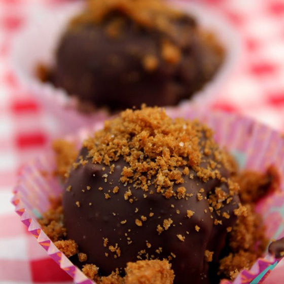 5. رشي على وجه الكرات القليل من فتات بسكويت اللوتس واتركيها في الثلاجة قبل التقديم.