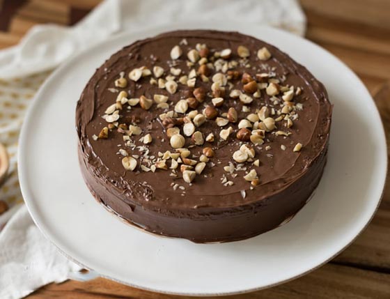 - زيني بالبندق المحمص على الوجه حتى يلتصق بصوص الشوكولاتة ثم ضعيها بالبراد 6 ساعات حتى تتماسك.