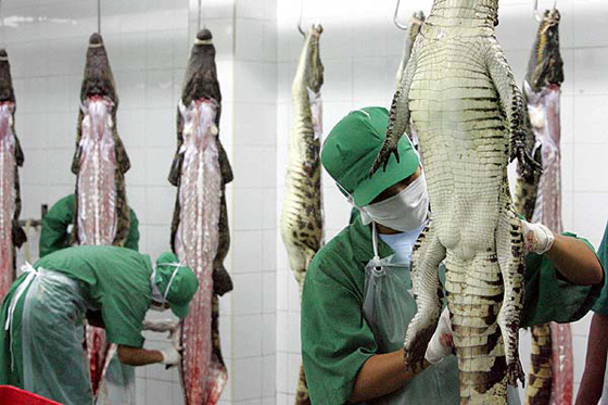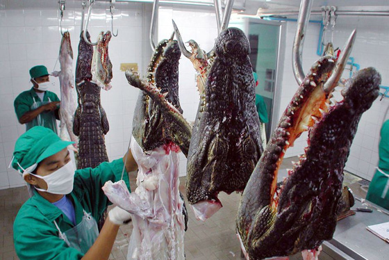 لم تعد الاستفادة من التماسيح تقتصر على جلودها فقط، بل تعدت أيضا إلى تناول لحومها وشرب دمائها لتصبح عادة مألوفة في تايلاند التي يعيش في مزارعها أكثر من مليون تمساح.