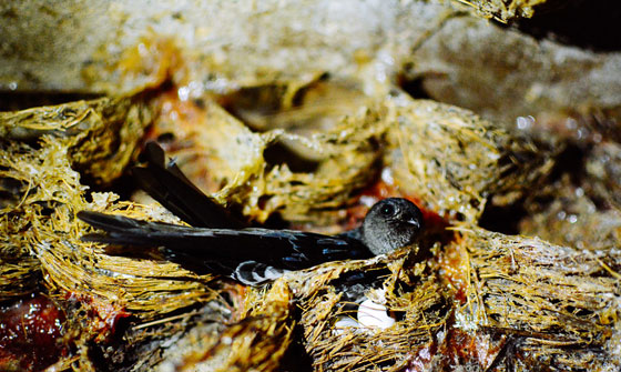 طائر السمامة هو طائر صغير باللونين البني والأسود، تُعتبر أعشاشه طعاماً مطلوباً بشدة. في الفلبين، يتناول الناس حساء "عش الطائر". وعادة، توجد هذه الأعشاش على المنحدرات العالية جداً. ومن الصعب جداً الوصول إليها. هذا الرجل يعيش مع 80 ألف طائر لصنع حساء عش الطائر!.