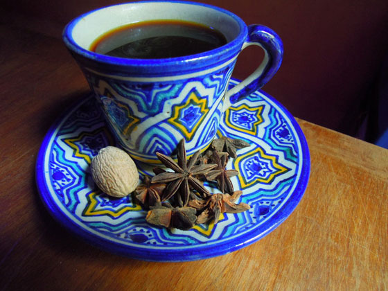 وللمغرب طريقتها الخاصة في تقديم القهوة: القهوة في المغرب تتميز برائحتها الزكية لما تحتويه من أعشاب، ويضاف إليها جوز الطيب، وعيدان القرفة، والقرفة المطحونة والزنجبيل.