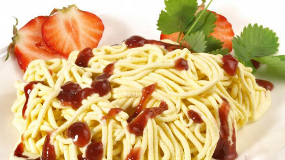 9. "شباغيتي آيس" (بوظة السباغيتي): البوظة (آيس كريم) بطعم السباغيتي قد تبدو مقرفة غير أنها من الحلويات المفضلة في ألمانيا خلال فصل الصيف. لكن لا تقلق، فهي لا تحتوي على باستا حقيقية، بل تحضر من آيس كريم بالفانيلا على شكل معكرونة، مع القشدة وصلصة الفراولة (لتظهر كصلصة الطماطم)، ورشات من الشوكولاته البيضاء لتبدو (كالجبنة).