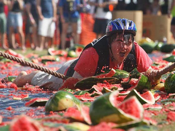 10- مهرجان البطيخ في استراليا: تشتهر مدينة شانشبلا في استراليا بزراعة البطيخ ويقام بها كل عام مهرجان يسمى (شانشيلا ميلون) ويضم هذا المهرجان عدد من الفاعليات الخاصة بثمار البطيخ، ومن اشهرها مسابقات التزحلق على ثمار البطيخ، والجري بالبطيخ .