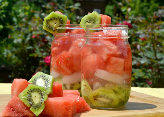 عصير غني بالفوائد: والعصير الذي يحتوي على خليط البطيخ والكيوي يحتوي على فوائد صحية عديدة، لأن الجسم سيحصل على كميات مضاعفة من فيتامينات "A" و"C" و"E" والبوتاسيوم والمغنيسيوم والنحاس. كما أن البطيخ سيمد الجسم أيضاً بفيتامين "B6" الذي يقوي جهاز المناعة. ولتحضير هذا العصير يمكن مزج ربع ثمرة بطيخ متوسطة الحجم مع ثمرتين من الكيوي مع نصف كوب من الماء، ثم يخفق الخليط جيداً ويتم تصفيته قبل التقديم.