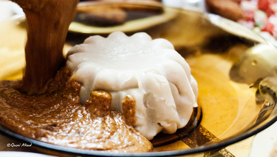 في حين أن العصيدة نفسها تطبخ من دقيق الذرة المخمر، الذي تتم إضافة بعض الطعم الفطير له، لينضج على نار هادئة ويحرك حتى يتماسك، ويصب في مواعين تمسح بالزيت أو السمن حتى لا يلصق بها، ويترك حتى يبرد. تتفاوت أمزجة الناس ما بين محبة هذا النوع أو ذاك، بحسب ذائقة الأكل عند كل فرد أو بيت سوداني، حيث ينشأ الأطفال دائما على ما اعتاده أهل البيت. ولا تنسى النساء السودانيات تخيّر الأشكال الهندسية لقوالب العصيدة، فإذا كان الشكل الدائري الذي يشبه نصف الكرة هو الشائع والتقليدي، إلا أن هناك العديد من الأشكال الأخرى الحديثة، التي تشبه قوالب الكيك ولكن بحجم أكبر. وقبل رمضان وفي ظل الاستعداد للشهر الفضيل، فالنساء يتجولن بالأسواق حيث يحضرن هذه الأغراض والأواني ضمن الاحتياجات الرمضانية المتعددة.
