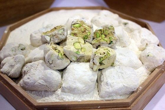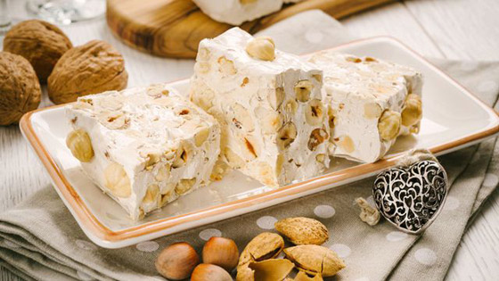 النوجا ذات الألوان الفاتحة أو الهشة الملونة بالكراميل، وكلها مرصعة بالمكسرات، كانت موجودة منذ العصور الوسطى، إنها حقا حلوى سهلة التحضير، حيث يوضع بياض البيض والعسل فوق حمام ماء دافئ لمدة تصل إلى سبع ساعات ثم توضع في قوالب وتقطع.