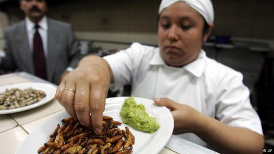 وجبات من الحشرات حاضرة أيضا في المطاعم العالمية. وعلى سبيل المثال، تلقى أطباق الديدان إقبالا كبيرا في المطاعم المكسيكية. وفي ألمانيا أيضا تم فتح أول مطعم متخصص في وجبات الجراد واليسروع، لكن زبائن هذا المطعم هم فقط ممن يملكون الشجاعة في اكتشاف وتذوق أنواع جديدة من الطعام.