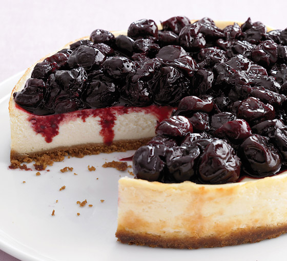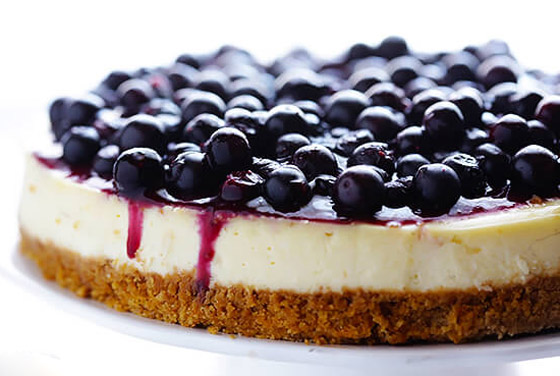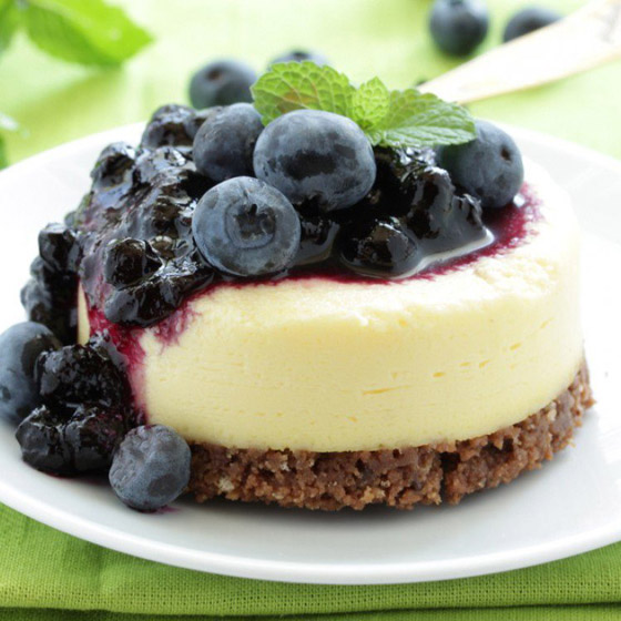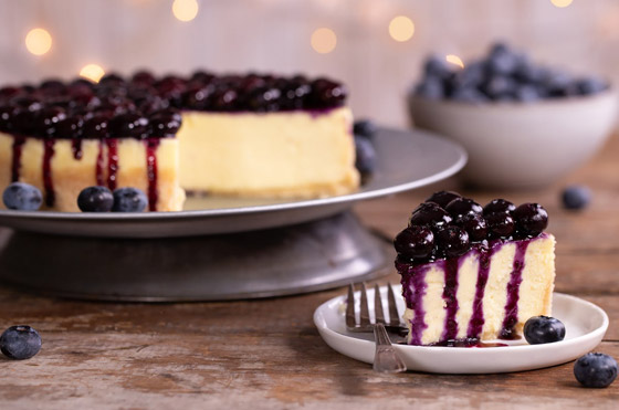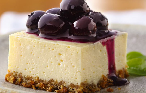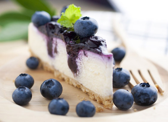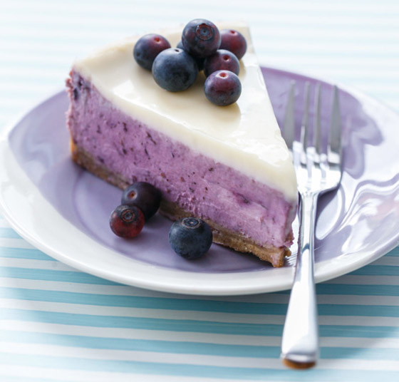6. وزعي البلوبيري أو التوت الأزرق فوقها وأدخليها للثلاجة لمدة 3 ساعات قبل التقديم ثم قطعيها وقدميها.