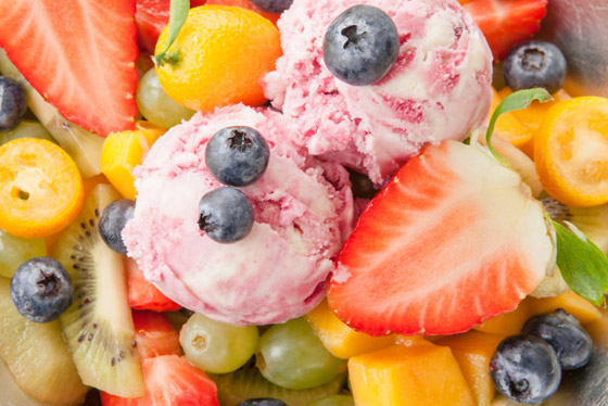 عندما تضيف المثلجات إلى الفواكه فإنك تصنع مزيجاً لا يقاوَم، وهو أفضل ما قد تتناوله في فصل الصيف. ضع طبقة من القشطة في وعاء ثم أضِف خليطاً من الفواكه المقطَّعة، ثم ضع طبقة من الآيس كريم ثم طبقة أخرى من الفواكه، أضِف بعض العسل وتمتَّع بالمذاق الرائع.