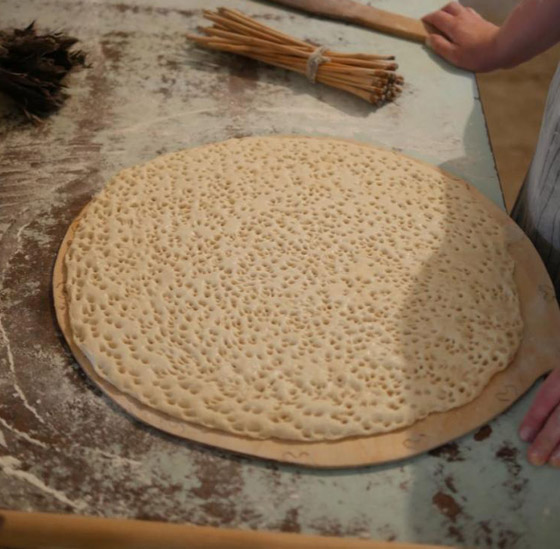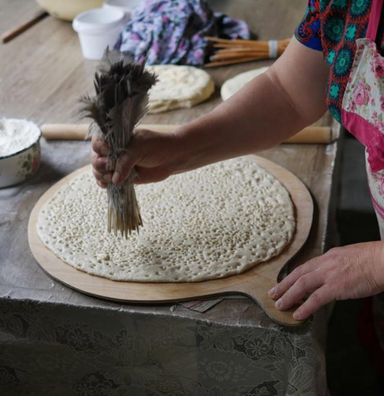 وقبل تناولك لهذا الخبز، ستلاحظ مظهره الفريد، فبدلاً من أن يكون سطحه مالساً، يغطى بالكامل بالتقعرات. وقالت بويوران إنه بعد تحضير ورقّ العجين لجعله مسطحاً، يتم الضغط عليه بأطراف ريش طائر الأوز، أو مجموعة من الأغصان. لاوليست هذه العملية مجرد خطوة عشوائية، إذ أنها تعود لآلاف الأعوام، وهي متعلقة بالمعتقدات القديمة التي كانت منتشرة في المنطقة قبل انتشار الإسلام.