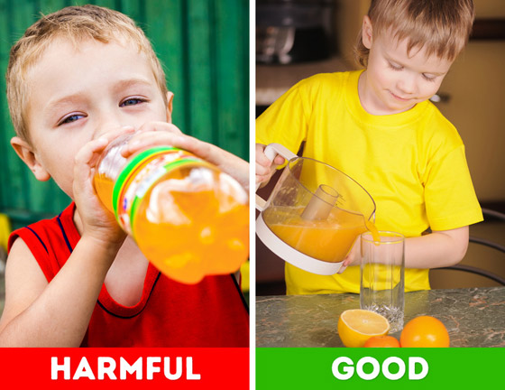 وفقًا لإرشادات الأكاديمية الأمريكية لطب الأطفال، يجب على الأطفال الذين تقل أعمارهم عن عام واحد ألا يشربوا العصير أبدًا، بينما يمكن السماح للأطفال الأكبر سناً بشربه، ويجب أن يكون استهلاكهم محدودًا، وذلك بسبب الزيوت النباتية المبرومة التي تحتويها والتي يمكن أن تؤدي إلى تسمم البروم وتؤثر على الجهاز العصبي للأطفال وعلى الجلد والذاكرة. بالإضافة إلى ذلك تحتوي تلك المشروبات على كمية كبيرة من السعرات الحرارية والسكر الذي يمكن أن يسبب تسوس الأسنان ولا يوفر أي فيتامينات أو معادن. بدلاً من ذلك، امنح أطفالك عصيرًا مغذيًا بالفواكه مع الحليب أو الزبادي لإضافة نكهة الحليب المخفوق أو المياه الغازية لمشروب صحي يشبه الصودا محلي الصنع.