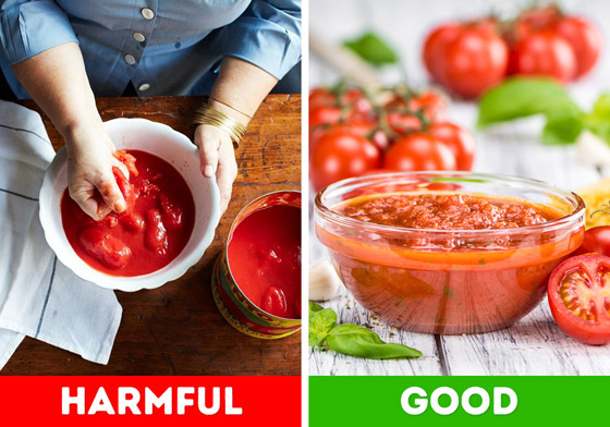(BPA) هو عنصر سام يوجد في العديد من مواد التغليف مثل البلاستيك، ولكن يمكن اكتشافه بكميات أكبر في العلب، والتي ينبعث الكثير منها أيضًا في الطعام الموجود في العلب، يمكن لهذا العنصر الخطير أن يؤثر على نمو الطفل، ونظامه التناسلي ودماغه، كما أنه يرتبط بالسرطان. لذلك عندما تقرر صنع المعكرونة مع صلصة الطماطم، ابحث عن وعاء زجاجي في السوبر ماركت أو الأفضل من ذلك، استخدم الطماطم المفرومة الطازجة.