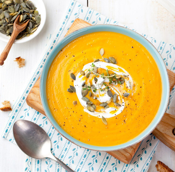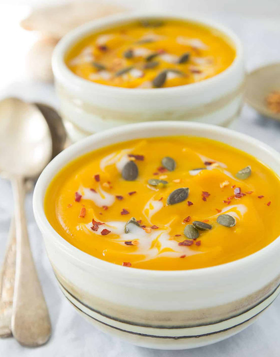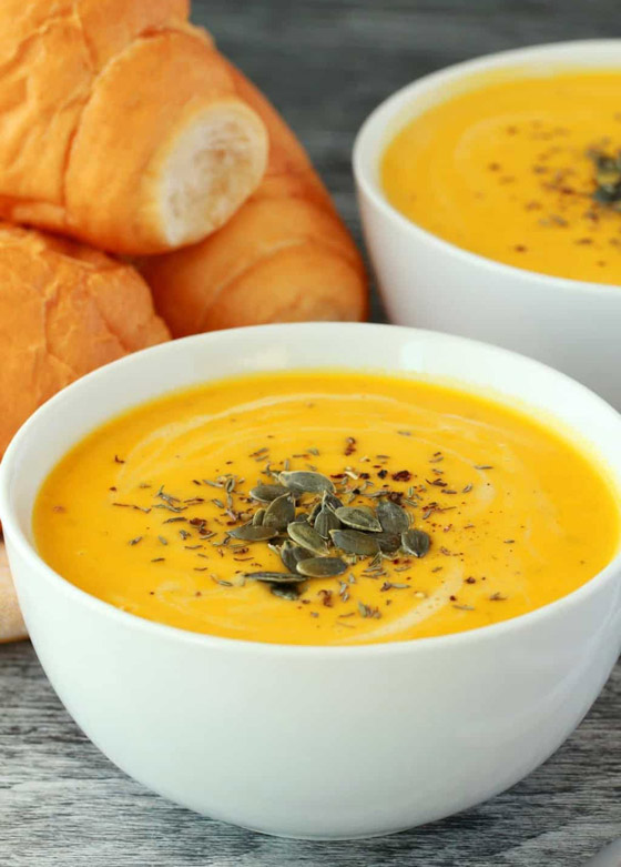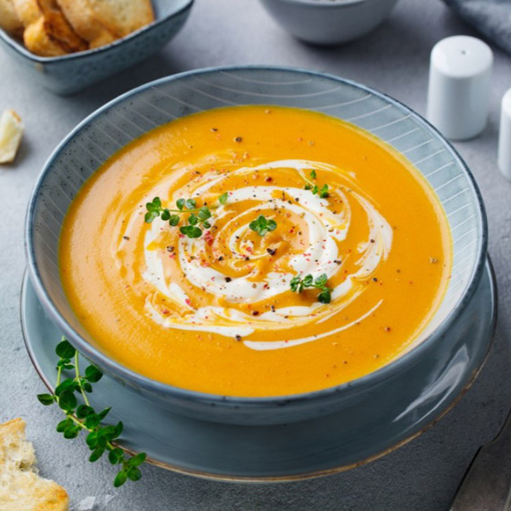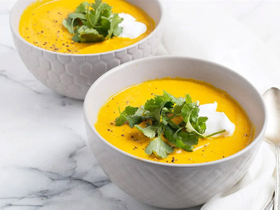 شوربة القرع والجزر.. أعدوا طبق من ذهب على سفرتكم، وقدموا دائماً أطباق الشوربات الصحية والطيبة بطعم القرع المفيد مع الجزر الشهي. وقت الطهي: 60 دقيقة.. يكفي ل: 5 أشخاص.