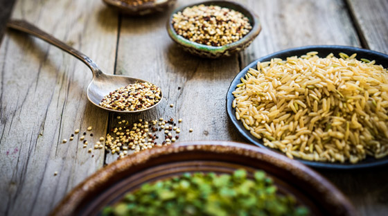 الحبوب الكاملة كالشعير والأرز البني