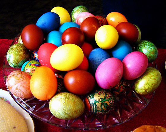 1. بيض عيد الفصح الملون: إن تقليد تلوين البيض أمر مشترك بين الشرق والغرب في الاحتفال بعيد الفصح وتبدو بعض النقوش العربية متأثرة بفن التطريز الذي يستخدمونه في تزيين الملابس.