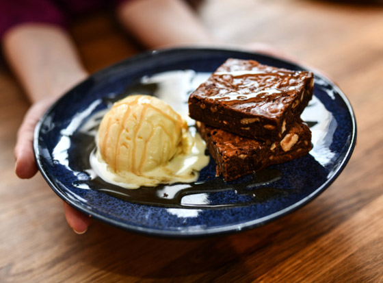 6. بعد إخراجها من الفرن، تصبح البراوني جاهزة، بإمكانك الاكتفاء بهذا القدر وتناولها من دون إضافات، أو من الممكن أن تضيف اللمسات التالية: