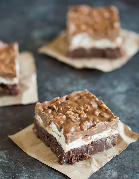 إذا كنت من عشاق الشوكولاتة فلا بد أنك تحب البراوني بأشكاله وأنواعه، ولا بد أنك كذلك في المكان الصحيح، إذ سنقدم لك وصفة سهلة وشهية لتحضير شوكليت كرانش براوني ذات الطبقات الثلاث. كل ما ستحتاجه هو 10 دقائق للتحضير و25 دقيقة في الفرن. أما المكونات فهي مكونات بسيطة ومتوافرة في كل منزل: