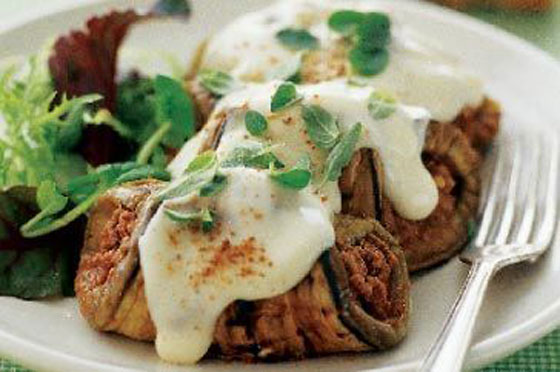رول الباذنجان باللحم: