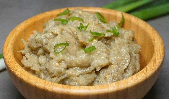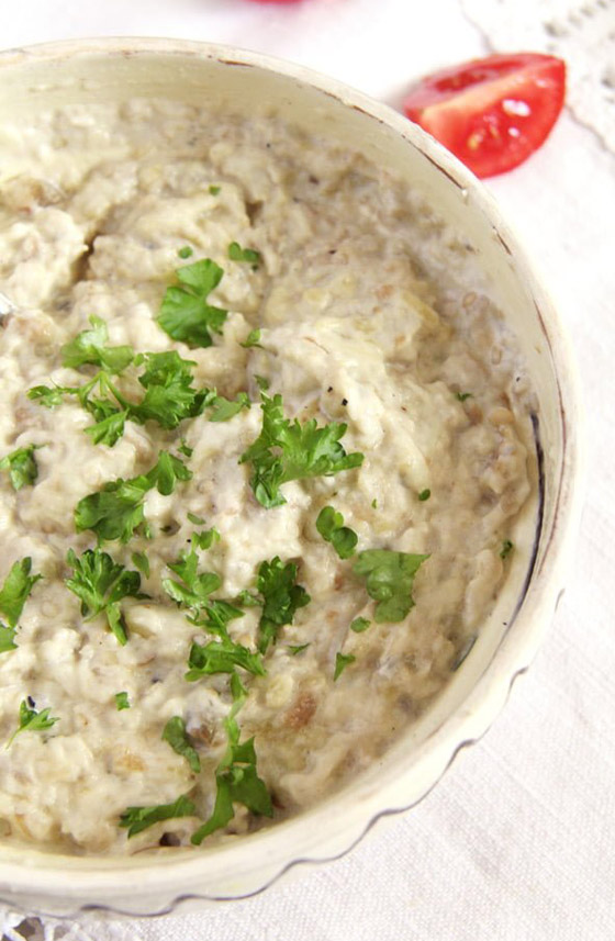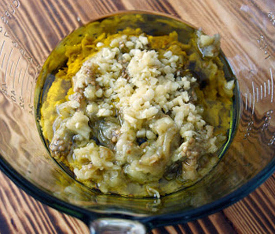 1. اشووا الباذنجان بالفرن حتى يصبح طرياً.