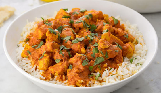 4- قدّموا الدجاج بالخلطة الهندية مع الأرز البسمتي بالتوابل، او مع خبز النان الهندي..وبالهناء والشفاء.