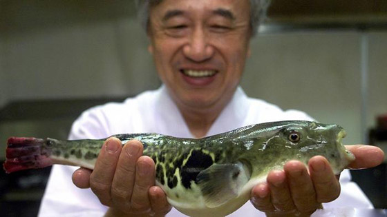 3. سمكة "فوجو" السامة: تعد وجبة "فوجو" من أرقى الوجبات اليابانية بالرغم من إنها نوع من السمك السام. لا يُسمح بطبخه وتقديمه إلا من قبل طهاة مدربين تدريب خاص ولديهم رخصة لذلك. يذكر أن فوجو غير مسموح به في الإتحاد الأوروبي، لكن يمكن الحصول عليه في الولايات المتحدة، كوريا الجنوبية واليابان. يصل سعر الوجبة الواحدة ل186 دولار (165 يورو).