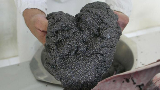 13. الكافيار الماسي: دخل هذا الكافيار في موسوعة غينيس للأرقام القياسية لأغلى أنواع الكافيار سعراً في العالم، حيث يبلغ سعر الكيلو الواحد منه 25.473 دولار (22.700 يورو). وينتمي هذا النوع من الكافيار لنوع من الأسماك الموجودة في إيران في بحر قزوين، وهي أسماك تعيش من ستين لمئة عام وتنتج بيض مائل للون الذهبي معروف برائحته المميزة.