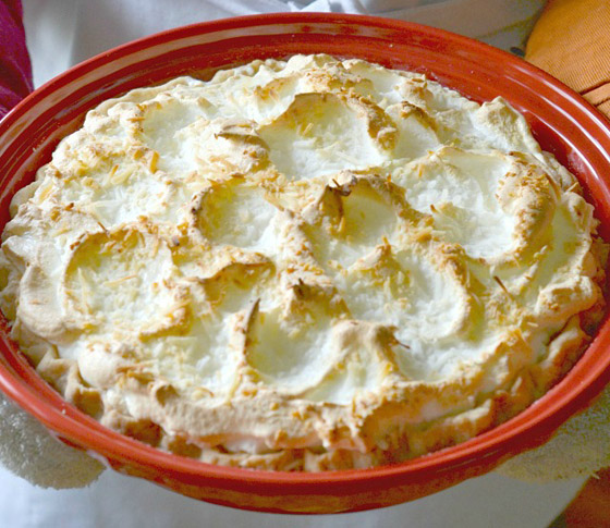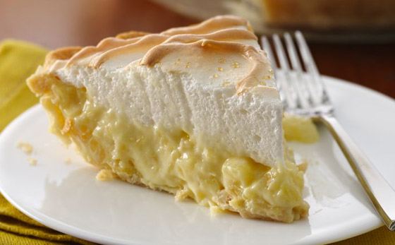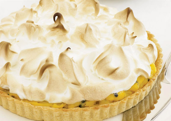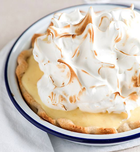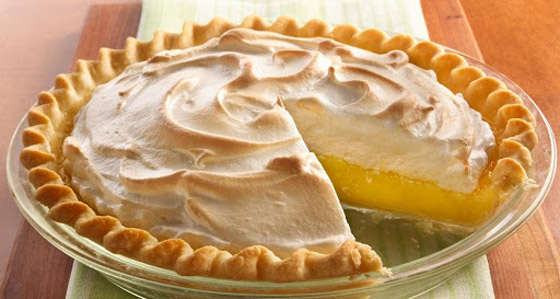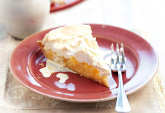 5. وزّعوا الحشو على سطح العجين، وضعوا "المرنغ" فوقه، باستخدام سكين. واخبزوا لمدّة تراوح ما بين 20 و25 دقيقة، وذلك حتى يصبح بنيّ اللون. ودعوا هذه الفطيرة تبرد لساعة، قبل تقديمها مع "الآيس كريم" (اختياري).