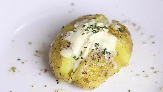 بعدها يمكنك وضع البطاطا في الميكرويف في وعائه الخاص وتسخينه لمدة 3 دقائق تقريبا ومن ثم عليك قلب البطاطا وإكمال تسخينها لنفس المدة، ويشار إلى أن ملمس البطاطا سيكون مختلفا قليلا لكن هذه الطريقة تنقذنا في حالات الطوارئ عندما نكون على عجلة.