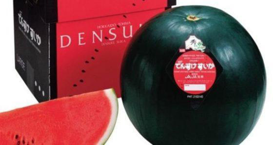 4. البطيخ الدينسوكي: تم بيع أندر نوع من البطيخ في المزاد العلني في اليابان بسعر قياسي 6100 دولار لأن هذا البطيخ ليس عادياً وتتميز قشرته بأنها سوداء اللون.