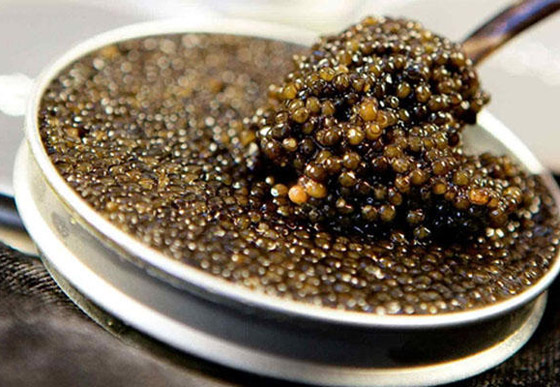 6. الكافيار: يتوافر الكافيار بكثره في لندن، ولكن يعتبر من أطعمة الأغنياء فقط؛ لأن تغليفه وحده يستحق ثروة لأنه يباع في عبوات من الصفيح مصنوعة من الذهب عيار 24 قيراطاً. ويباع هذا الكافيار مقابل 25000 دولار.