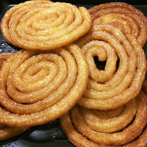 5. الخطوة الخامسة: نسخن الزيت بشكل جيد ونبدأ بصنع دوائر المشبك، إذ نتركها في الزيت حتى تحمر.