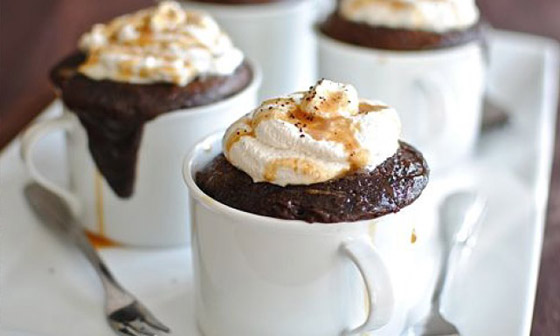 مقادير كيك المج، هي ربع كوب دقيق، وملعقة كاكاو خام، وربع ملعقة صغير باكينج بودر، 2 ملعقة كبيرة سكر، رشة ملح، 5 ملاعق كبيرة لبن، 2 ملعقة كبيرة زيت. تخلط كل المكونات الجافة جيدا ثم يضاف اللبن والزيت، يوضع المج في الميكرويف من دقيقة ونصف إلى دقيقتين، يقدم مع بولة آيس كريم.