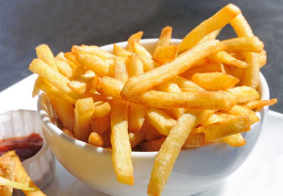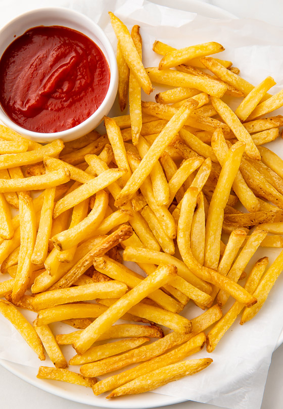 من المهم التأكد من أن ينضج وسط البطاطس تماماً قبل أن يصبح السطح الخارجي بنياً، ولتحقيق ذلك يجب طهي البطاطس مرتين. قد يبدو أن قلي البطاطس مرتين يتطلب الكثير من العمل، ومع ذلك إذا كنتم تريدونها خفيفة ومقرمشة فهذا ما عليكم القيام به. خلاف ذلك ستكون إما مقرمشة من الخارج ولكنها غير مطبوخة جيداً في الوسط، أو دهنية وكأنها مسلوقة.