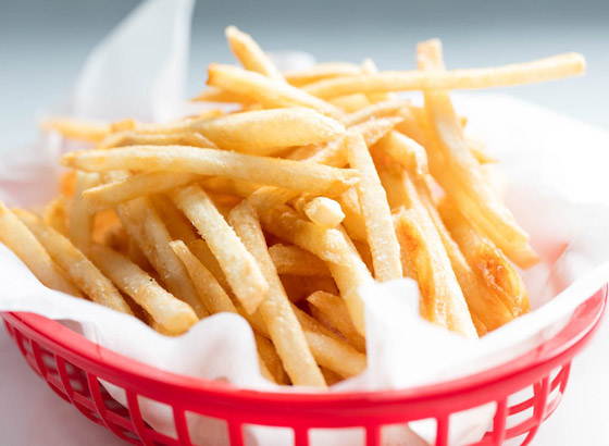 زيت الفول السوداني المكرر هو أفضل زيت يُستخدم في صنع البطاطس المقلية، قد تتفاجأون عند معرفة أن البطاطس المقلية في المطاعم مقرمشة للغاية لأنها تقلى بالزيت القديم باستمرار. القاعدة العامة هي أنه يمكنكم إعادة استخدام زيت القلي ثلاث أو أربع مرات، أو لمدة 6 ساعات في الطهي.