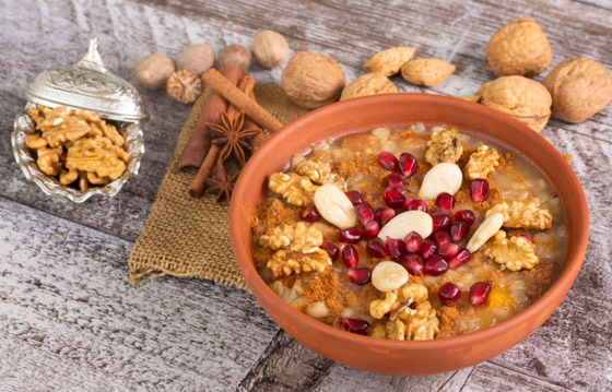 ويأتي أصل الاحتفال بعاشوراء بهذا الطبق المغذي واللذيذ من الأتراك، الذين يقْدمون بداية شهر محرم، على شراء البهارات والمكسرات والبقوليات لتحضير وصفة حلوى عاشوراء. فبحسب المعتقدات التركية، أول من أعدَّ هذا الطبق هو النبي نوح بعدما نجاه الله من الطوفان، في حين يؤمن اليهود بأن موسى نجا من فرعون في هذا اليوم أيضاً بعدما انشق البحر.
