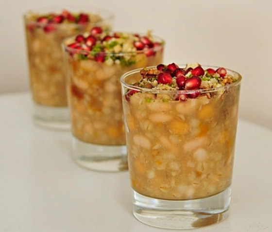 5. تتطلب الوصفة التركية إضافة الحمص والفاصولياء، وهو خيار يمكن الاستغناء عنه دون أن يؤثر على نكهة العاشوراء اللذيذة الأخيرة.