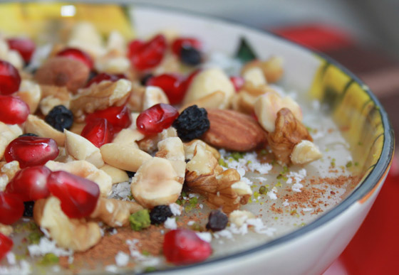 13. عند التقديم، يتم تزيين الكاسات وفق الرغبة بالمكسرات والزبيب والرمان وجوز الهند، كلٌّ حسب تفضيله.