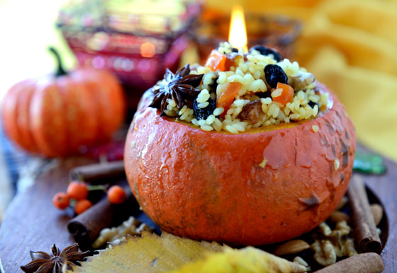 مع اقتراب موعد الهالوين قد ترغب في تحضير طبق شهي مستوحى من هذه المناسبة، وهنا لا نعني أن تقوم بتحضير طبق يثير الرعب في نفوس ضيوفك، كل ما نقصده هو أن يكون المكون الأساسي لطبقك هو اليقطين، الرمز الأساسي لعيد الهالوين والذي من الممكن أن يحضر منه العديد من الأطعمة الشهية منها الأرز باليقطين أو القرع. إليك هذه الوصفة: